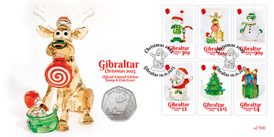 The Gibraltar Christmas 2025 50p coin depicts a view of the Rock, accompanied by a Christmas tree and Father Christmas on his sleigh. The obverse depicts the effigy of His Majesty King Charles III.